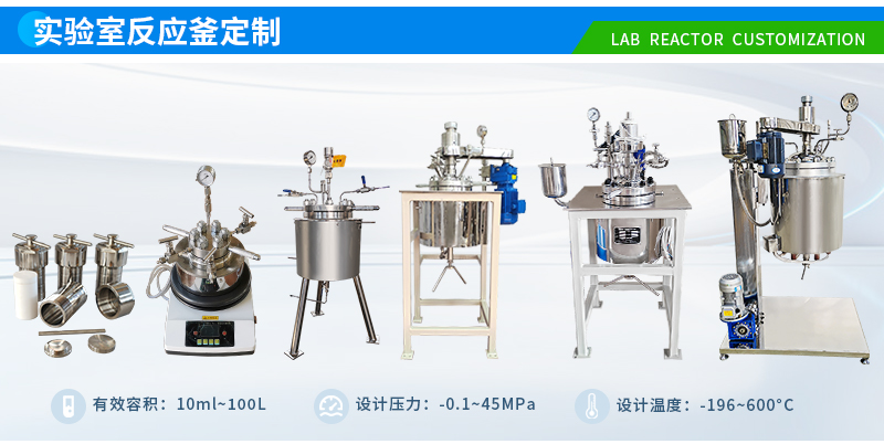 主要材料 釜體材料主要采用0Cr18Ni9(304)、00Cr17Ni14Mo2 (316L)、1Cr18Ni9Ti(321),并可根據不同介質要求制作鈦材(TA2)、鎳材、鉭材、鋯材、哈氏合金、反應釜內噴四氟及襯鎳(Ni6)
